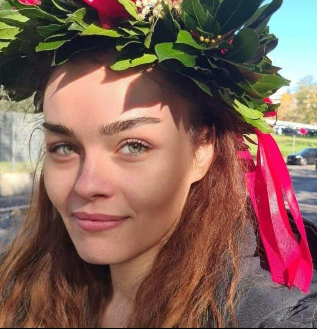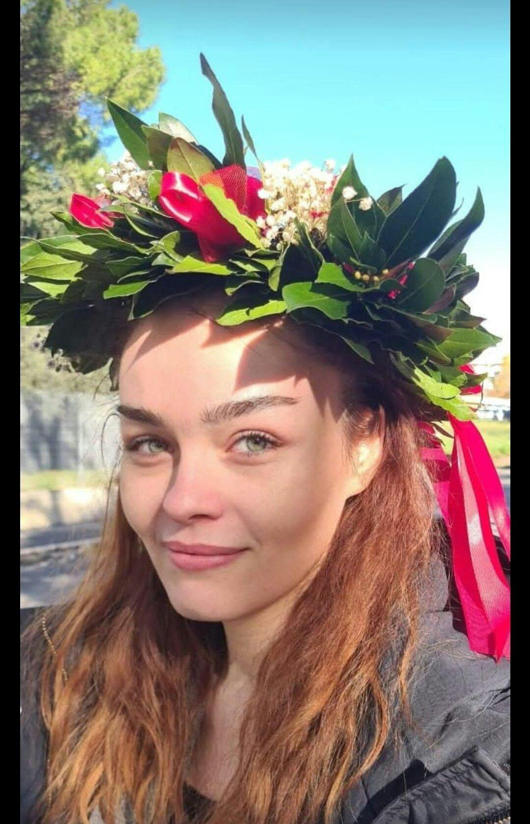 Corona di alloro per laurea, realizzata a mano, con rose finte e vel di sposa.