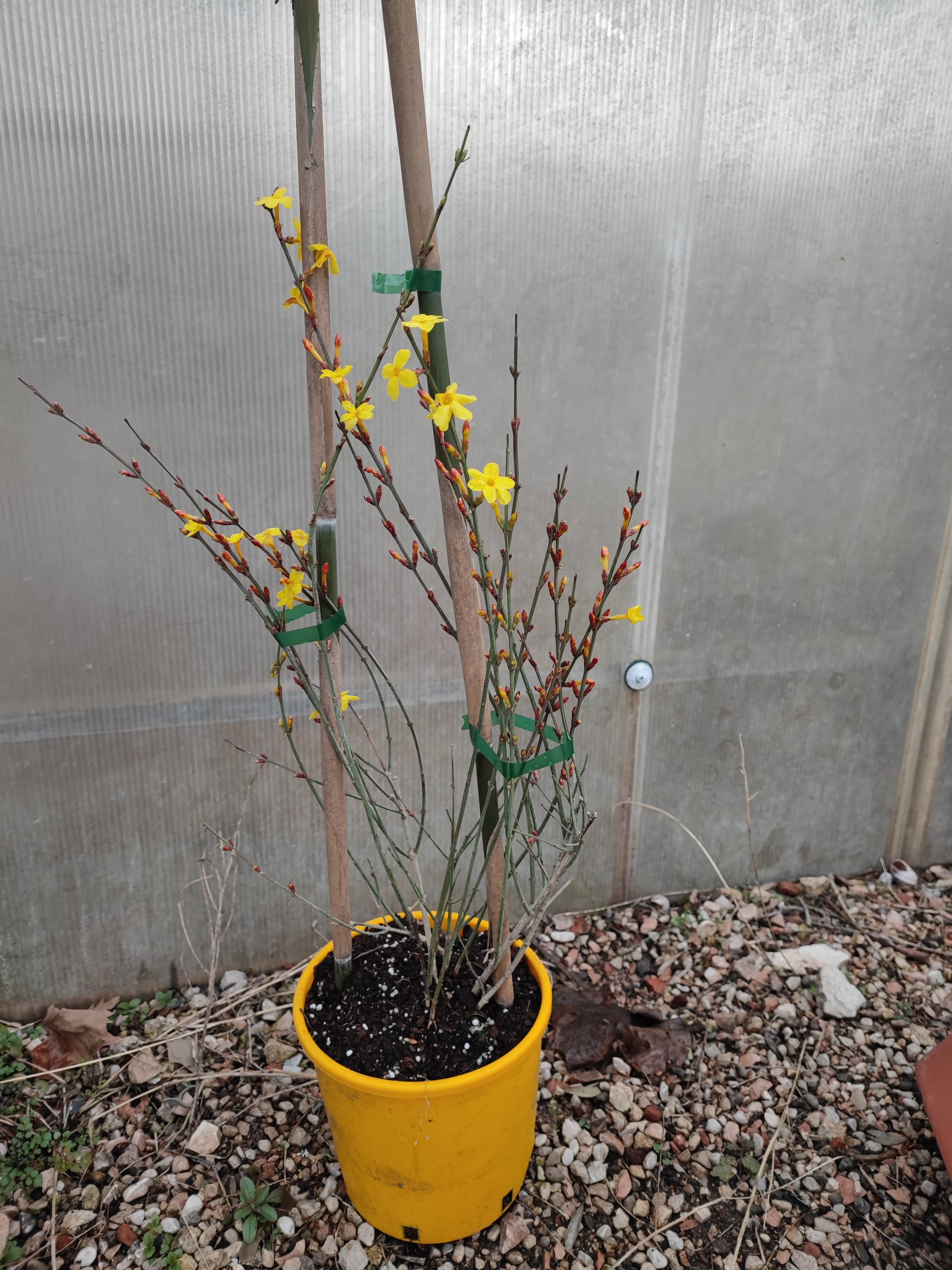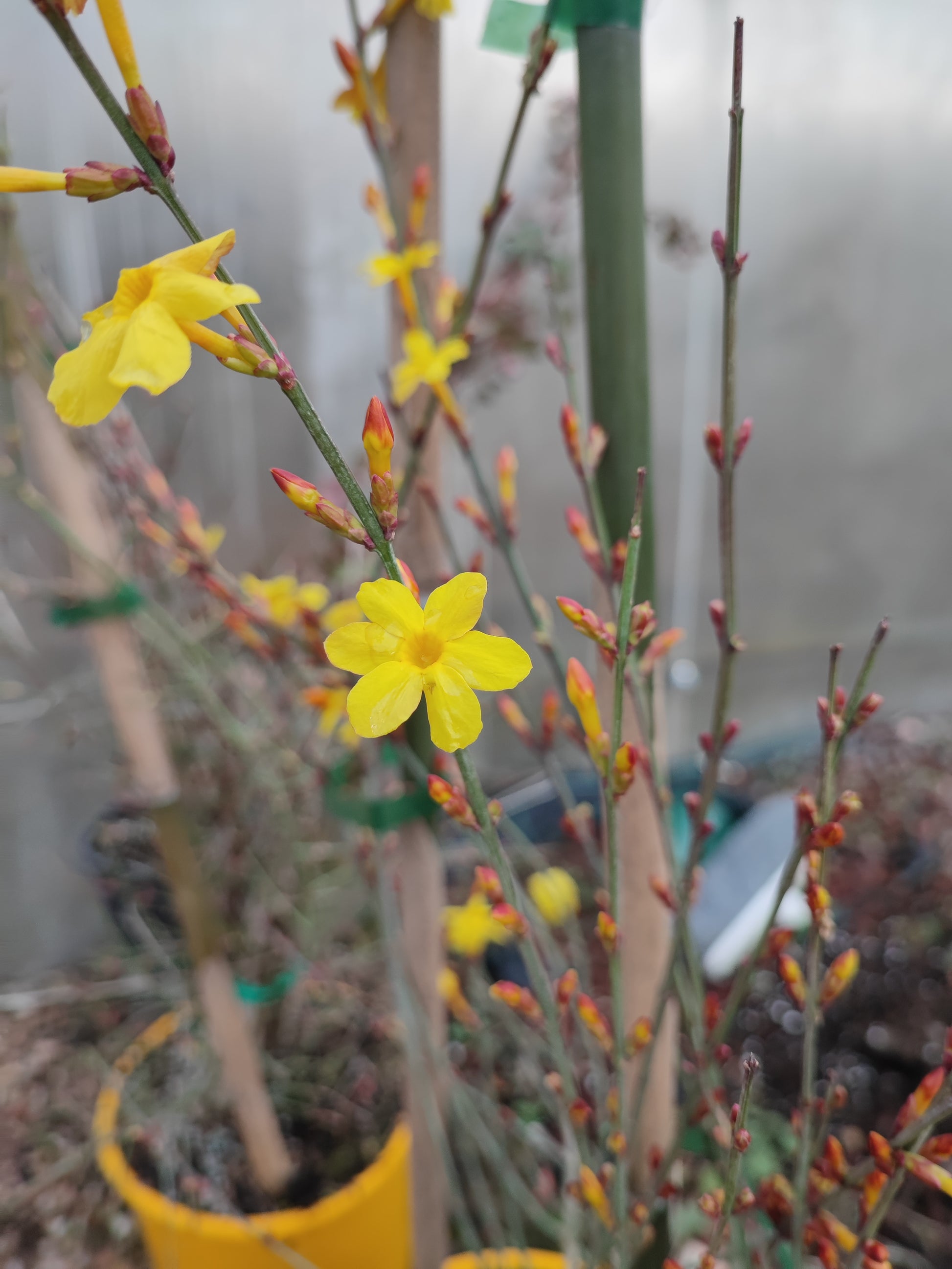 Il Gelsomino nudiflorum, anche conosciuto come gelsomino d'inverno o jasminium nudiflorum, è un arbusto ornamentale a fioritura invernale, ideale per portare colore in giardino e sul terrazzo nei mesi più freddi. Produce numerosi fiori giallo brillante sui rami spogli, creando un forte impatto decorativo da dicembre a marzo.